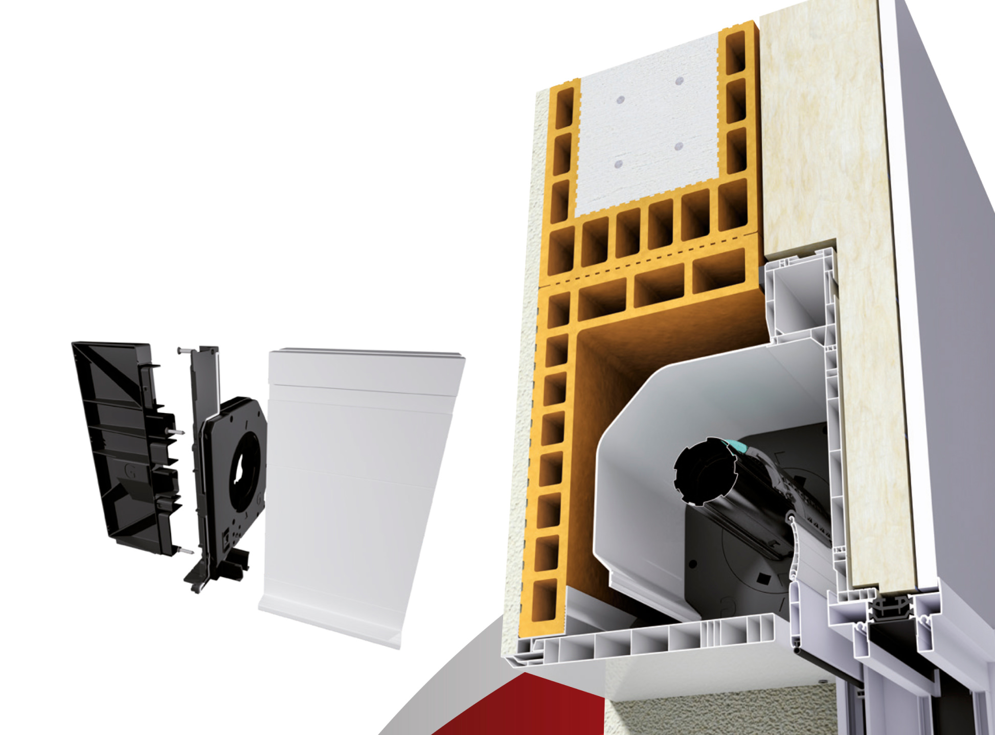 Rien à rajouter sur le coffre : les pièces nécessaires à l’étanchéité sont déjà assemblées. Le système d’étanchéité sur la maçonnerie est identique à celui utilisé sur la menuiserie.